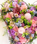 Send et sidste farvel med et smukt, lukket hjerte i pastelfarver, dekoreret med elementer fra naturen, som giver hjertet en let og naturlig elegance. Hjertet er sammensat af sæsonens blomster. Størrelsen varierer efter valgt pris. Billedet viser et hjerte på ca. 27 cm.