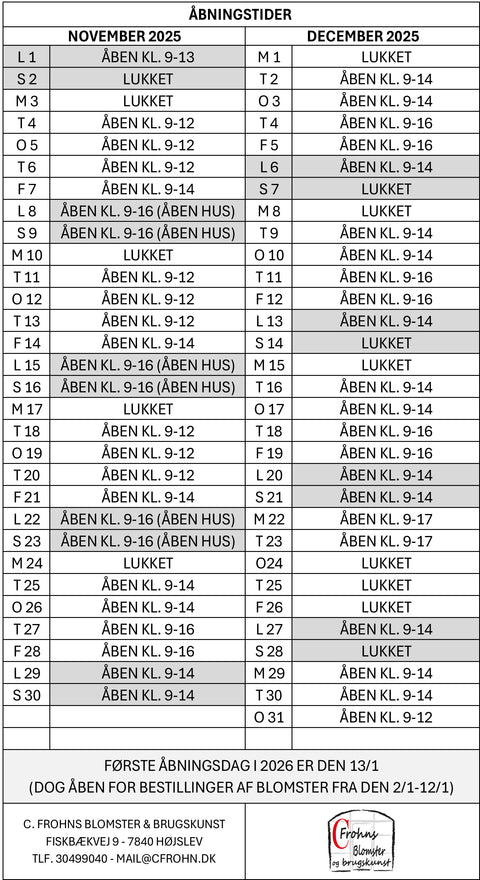 I november og december har vi ekstra åbent, så du har god tid til at finde alt det, der gør din jul helt særlig.
